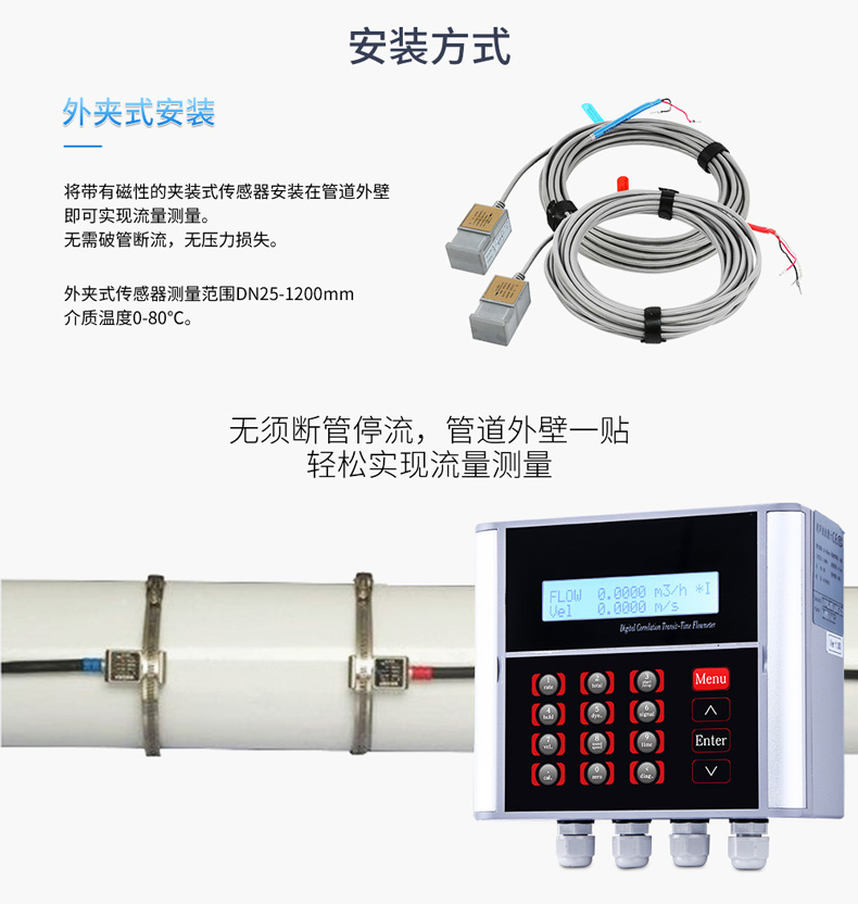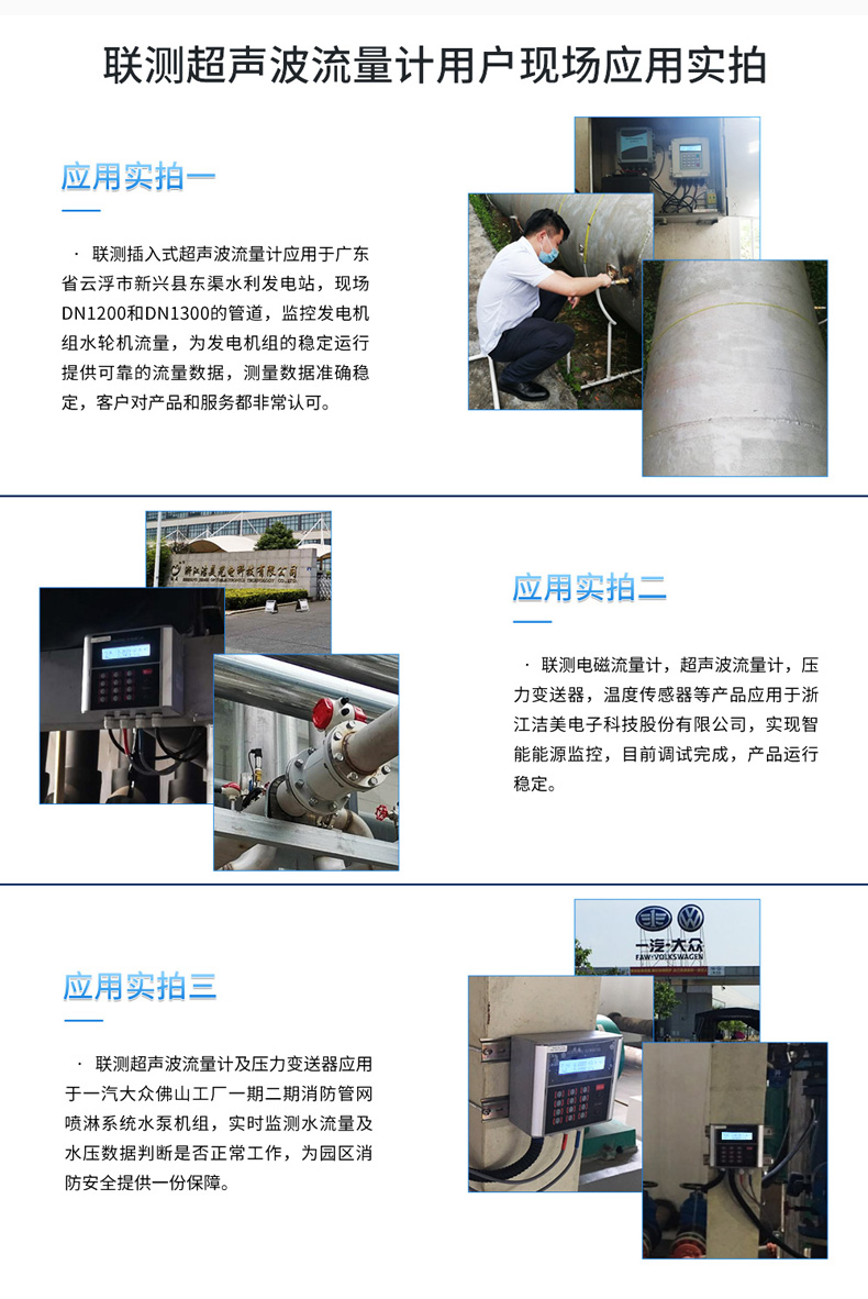 聯(lián)測超聲波流量計適合相對純凈液體流量的管外測量,尤其是在水流量測量、在工業(yè)循環(huán)水、空調制冷循環(huán)水、原水、高壓水、自來水,污水排放管等廣泛應用。