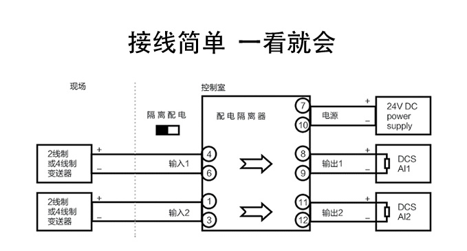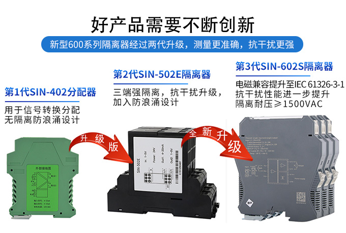 新款隔離器可向變送器提供隔離的工作電源,同時(shí)檢測回路中的電流,經(jīng)隔離變送輸出電流或電壓信號(hào)。 輸入端、輸出端及電源端三端隔離,具有響應(yīng)快、功耗低、溫度特性好等優(yōu)點(diǎn)。