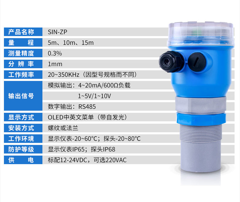 聯(lián)測SIN-ZP超聲波液位/物位計采用超聲波脈沖原理進行非接觸式的測量,是一種非接觸式、高可靠性、高性價比、易安裝維護的物位測量儀器。